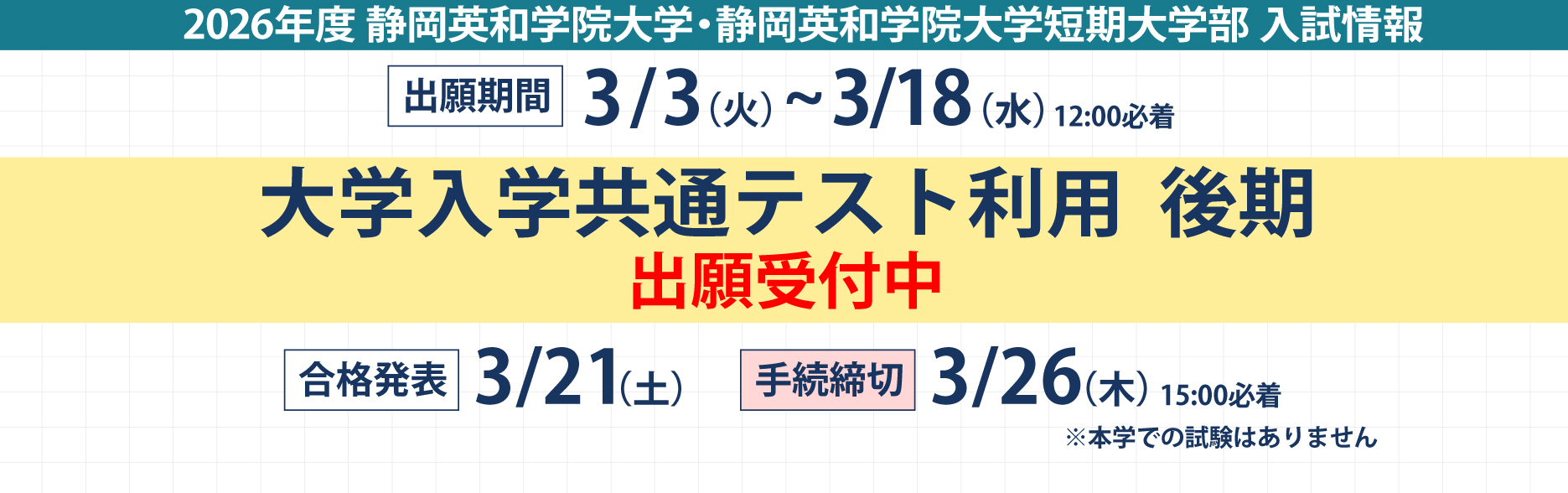 【入学者選抜情報】出願期間:2/16(月)10:00 ~ 2/26(木)17:00